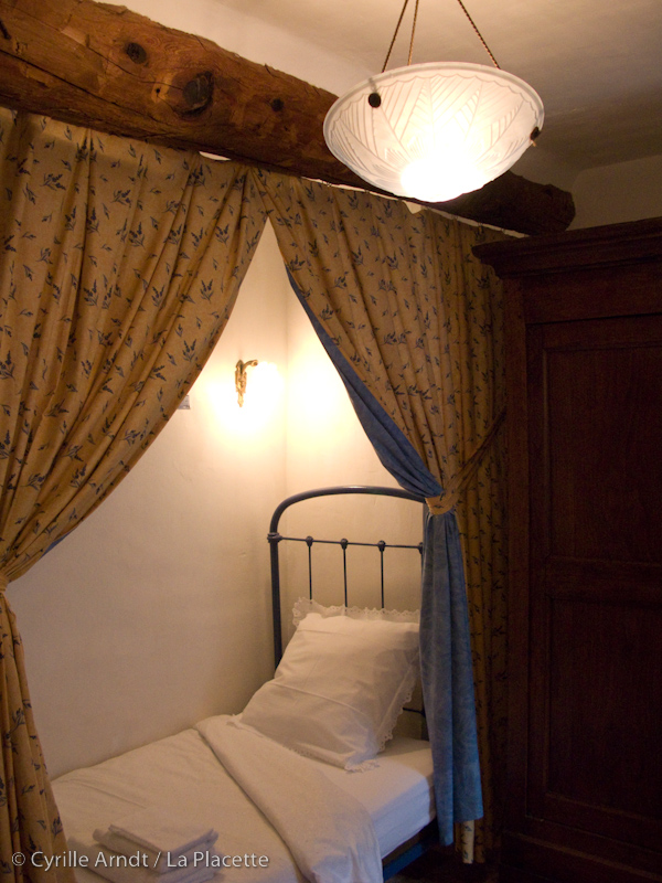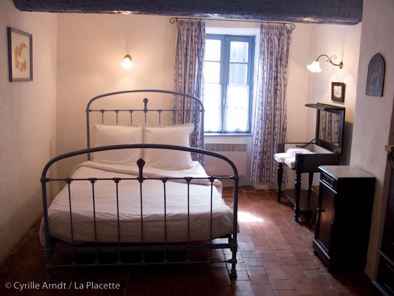 Both rooms look over the quiet "placette" with benches and its central mulberry tree which make them very lighty and airy.